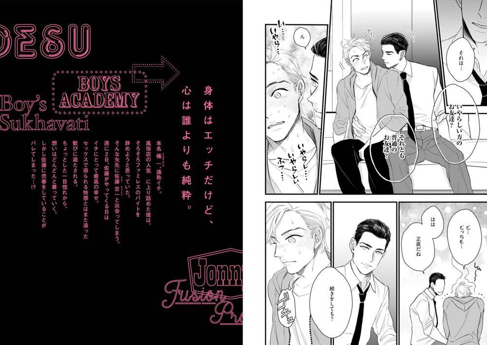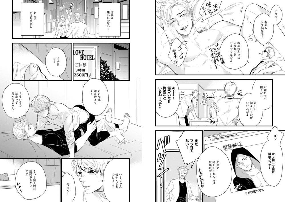 “身体はエッチだけど、心は誰よりも純粋。”本名・橘 一(たちばな はじめ)、通称イチ。風俗店の人気No.1に上り詰めた彼は、そろそろファミレスのバイトを辞めようと思っていた。そんな矢先に佐藤 京一(さとう きょういち)と出会ってしまう。週に2日、佐藤がやってくる日はイチにとって最高の幸せ。セックスで得られる快感とはまた違った歓びに満たされる。ちょっとした一目惚れから、想いはどんどんと募っていく。しかし佐藤に売春をしていることがバレてしまった…!?